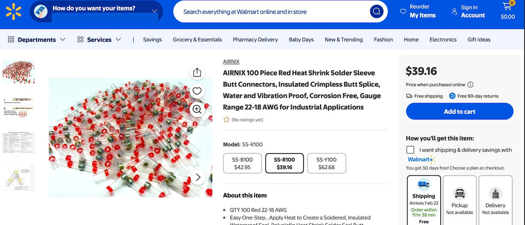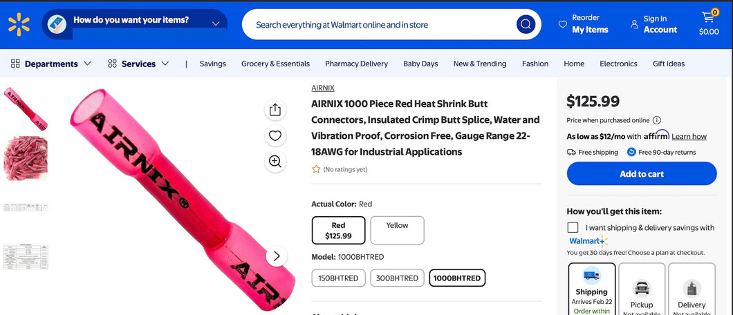 Heat Shrink Crimp Butt Connectors. Red and Yellow. 150, 300 or 1000 Piece